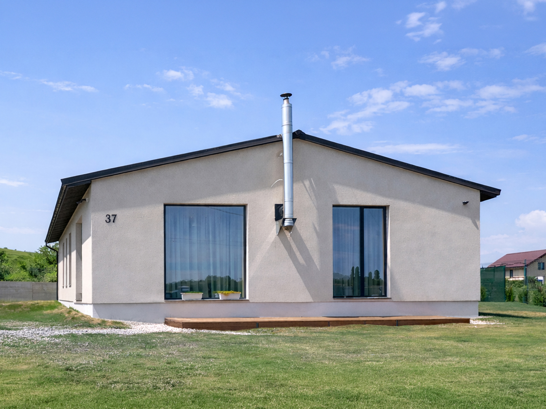 Elementul dominant al ansamblului este volumul A-frame, care impresionează prin scară și prezență, fiind acoperit cu stuf, un material natural ce oferă atât valoare estetică, cât și o integrare subtilă în peisaj. Accesul către cabinet este tratat ca o experiență arhitecturală în sine: intrarea se face prin traversarea unui mic lac, care conduce către sala de așteptare amplasată în interiorul volumului A-frame. Acest spațiu uimește prin înălțimea generoasă, luminozitate și senzația de deschidere, transformând timpul de așteptare într-o experiență calmă și memorabilă.